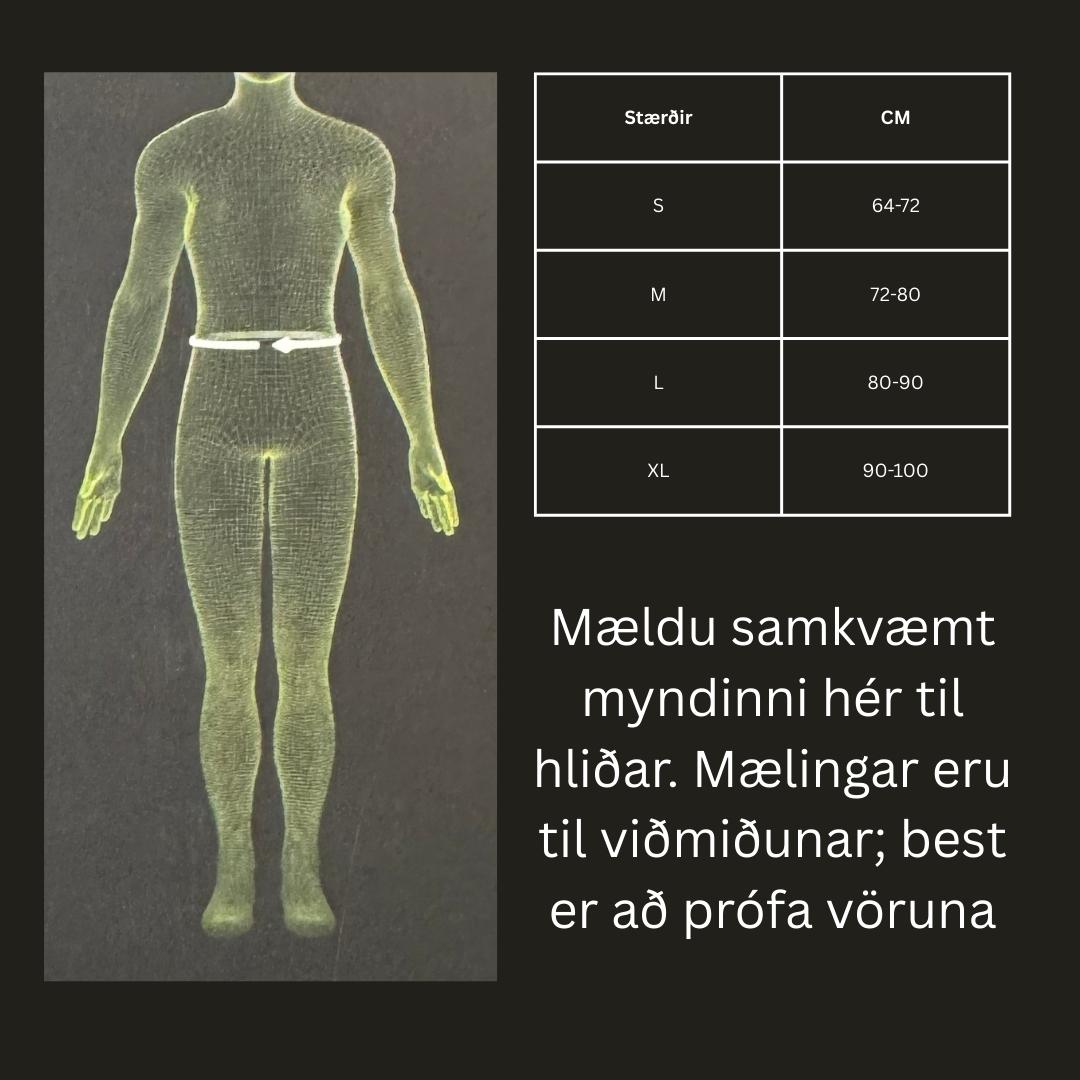 Beltið er með innbyggðri spelku sem styður við bakið og eykur stöðugleika, án þess að skerða hreyfanleika.