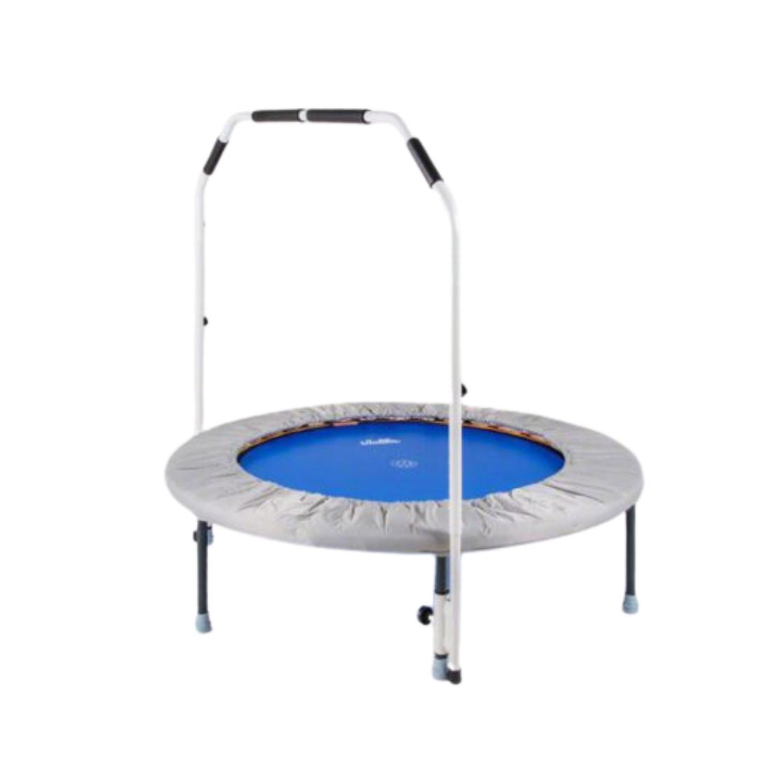 Handfang fyrir Trimilin trampólín (100 cm). Stöðugt og traust handfang sem passar á Trimilin mini-trampólín með 102 cm þvermál. Handfangið er auðvelt í uppsetningu og hæðarstillanlegt, sem gerir æfingar öruggari og þægilegri – sérstaklega fyrir þá sem eiga í erfiðleikum með jafnvægi.