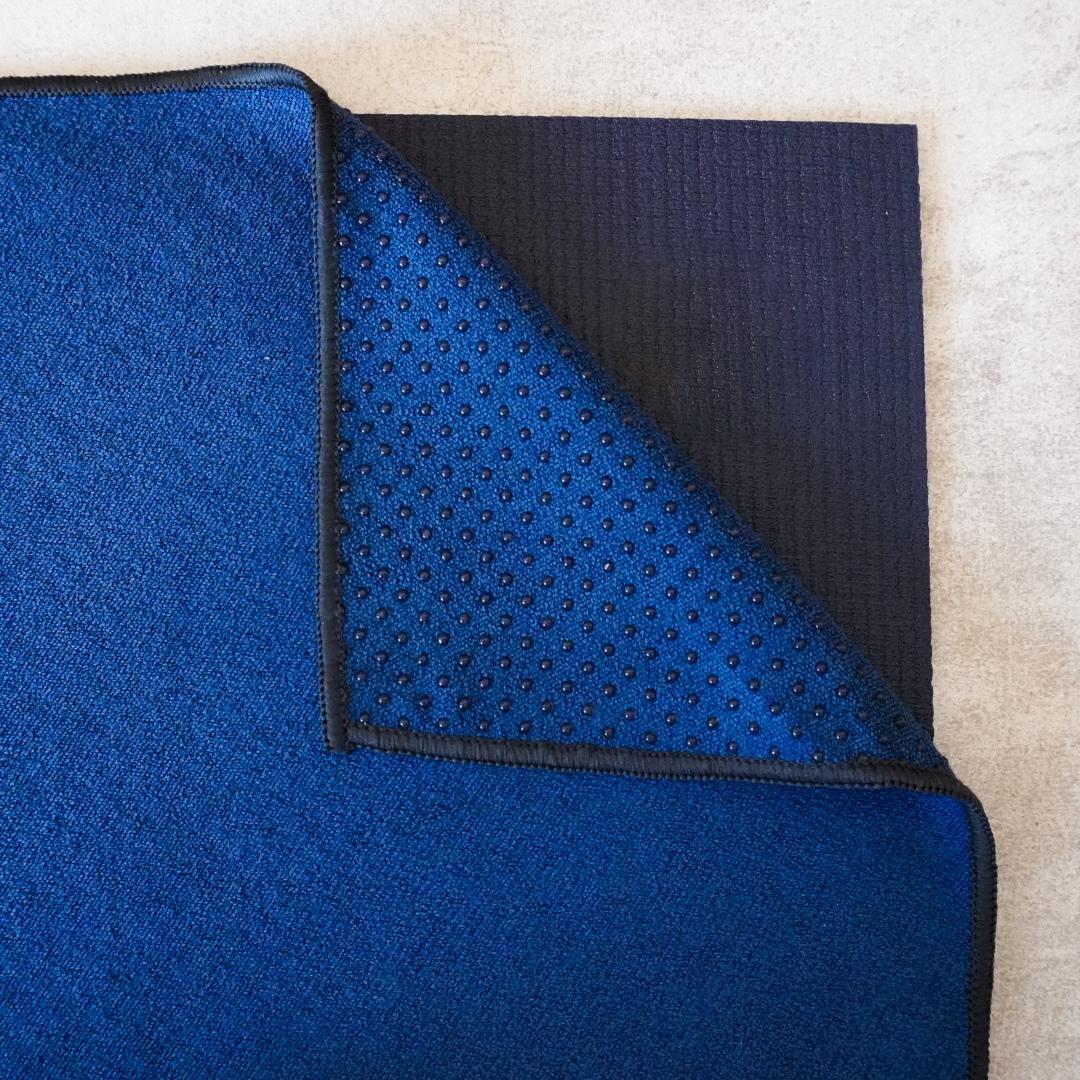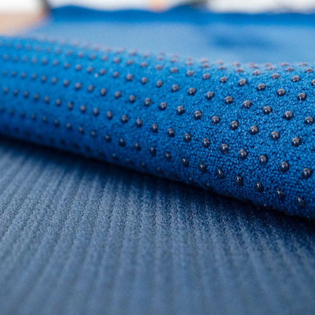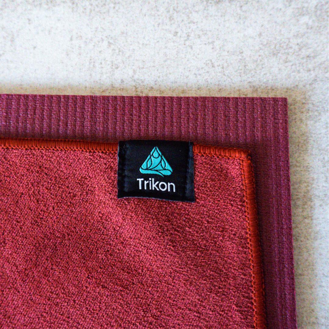 Vönduðu jógahandklæðin frá Trikon draga í sig meiri vökva heldur en hefðbundin handklæði sem að eykur þar að leiðandi grip. Handklæðin henta því einstaklega vel fyrir þá sem að eiga það til að svitna mikið eða fyrir þá sem að stunda jóga í heitum sal. Undir handklæðinu má svo finna sílíkondoppur sem að límast við jógadýnuna og halda því handklæðinu á sínum stað.