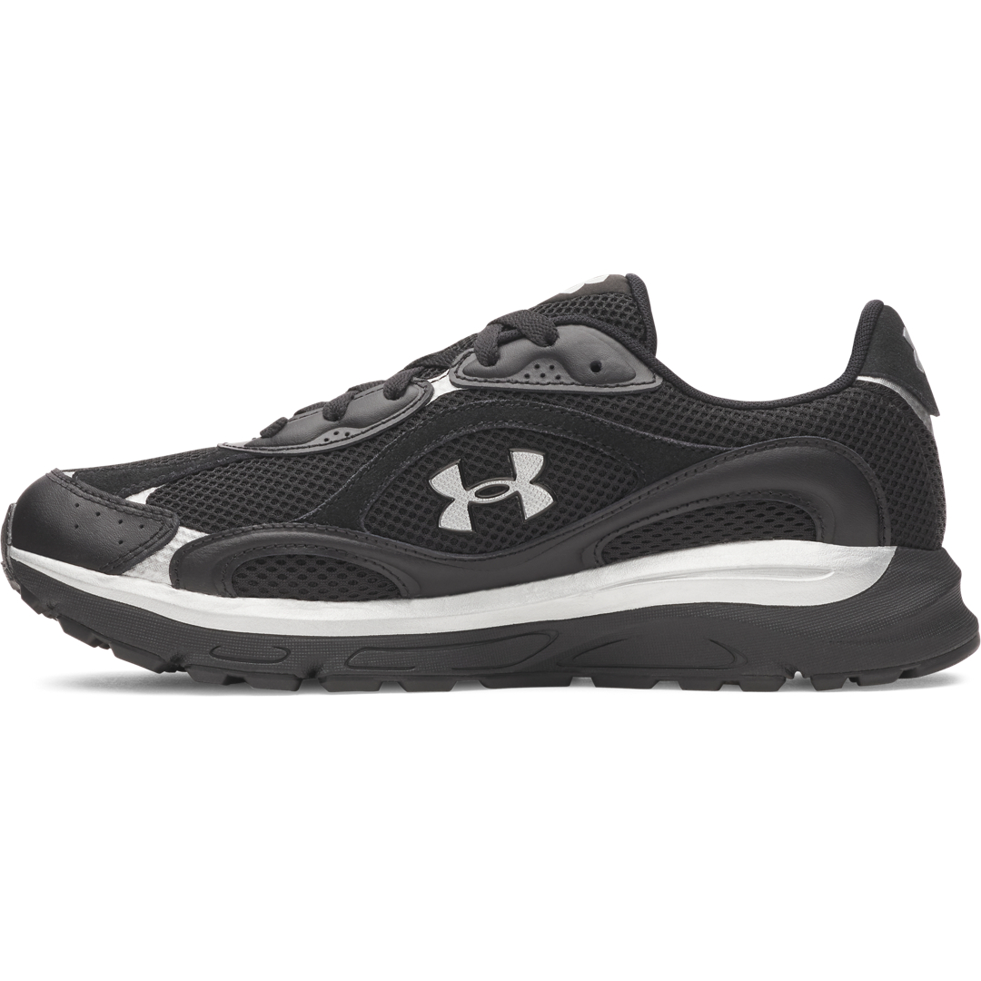 UA Tech Runner sameinar klassíska hönnun og nútímalegt útlit og gefur nýja sýn á klassískan íþróttaskó. Skórinn er með loftgóðum og stílhreinum efri hluta úr netefni með slitsterkum leður- og rúskinssyfirlögum, léttum EVA millisóla sem veitir góða dempun og þægindi, og gúmmísóla í fullri lengd sem tryggir gott grip og aukna endingu, auk þess sem metallic-áferð og skartmerki gefa honum fágað yfirbragð.